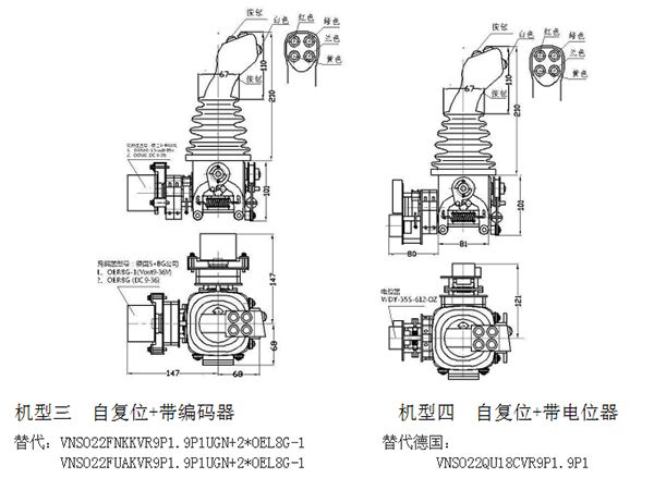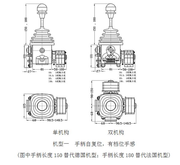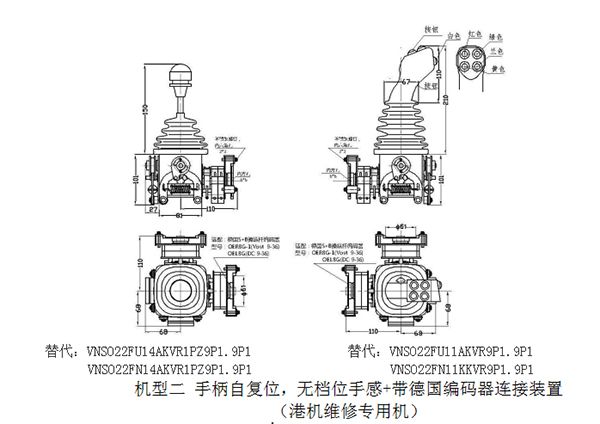 機(jī)型二,手柄自復(fù)位、無檔位手感、帶德國S+B編碼器連接裝置(專用維修機(jī)型);(替代德國S+B公司Vnso操縱桿)