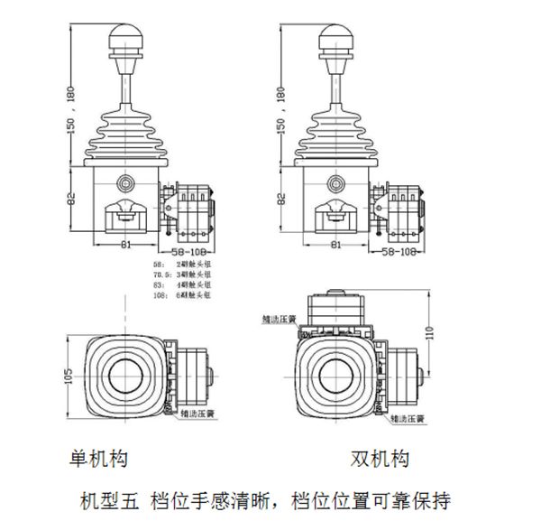 機(jī)型一,手柄自復(fù)位、有檔位手感,輸出開關(guān)量信號(hào);