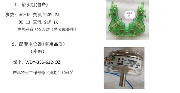 2).觸頭組: 配套電器觸頭組原型為德國杰斯曼V6多軸控制器上的觸頭組,經(jīng)本公司升級(jí)改造后,由原易損件升級(jí)為正常零部件。電氣壽命超高,達(dá)到與操縱桿整機(jī)同壽命。臺(tái)架帶電負(fù)載試驗(yàn)到1000萬次,觸頭組仍能正常工作。本觸頭組用于高配款機(jī)型。