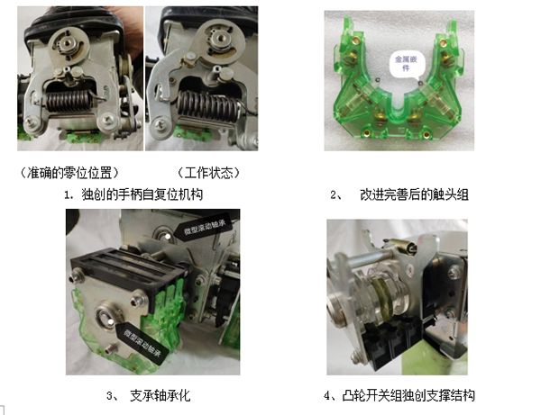 3、獨(dú)創(chuàng)的手柄自復(fù)位機(jī)構(gòu),零位永不飄移,解決主令自復(fù)位機(jī)構(gòu)壽命短板的世界難題。