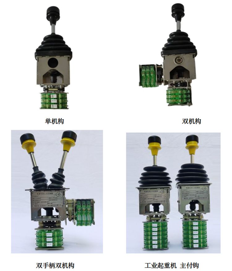 1.分類:控制器按手柄分為單手柄單機(jī)構(gòu)、單手柄雙機(jī)構(gòu),雙手柄雙機(jī)構(gòu)三種類型。單手柄單機(jī)構(gòu)控制器操縱一個凸輪軸組合開關(guān),其手柄“一”字形操作;單手柄雙機(jī)構(gòu)控制器操縱兩個凸輪軸組合開關(guān),其手柄“十”字形操作或聯(lián)動操作;雙手柄雙機(jī)構(gòu)控制器“一”字形操作,每一個手柄操作一個凸輪軸組合開關(guān)。