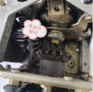 (3)立式布置的凸輪開關(guān)組(前后操作方向)的齒輪傳動付為二級傳動, 一級是介輪付,第二級是錐齒輪付。問題出在介輪傳動付小直齒輪的芯軸的固定方式上。第二級錐齒輪傳動付的錐齒輪和第 一級小齒輪共用一個支承芯軸。而支承芯軸的緊固結(jié)構(gòu)存在易松動傾向,一旦松動即出現(xiàn)卡阻。這個問題,行業(yè)內(nèi)始終未能解決好。