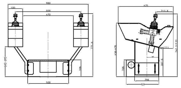 1、QT7S1一體式港機(jī)聯(lián)動控制臺配置<SJ>P-XKDF全金屬結(jié)構(gòu)主令控制器。座椅為普通座椅,客戶可選定。左右安裝側(cè)板用螺釘與底座固定在一起,側(cè)板上下調(diào)節(jié)量±25mm。
