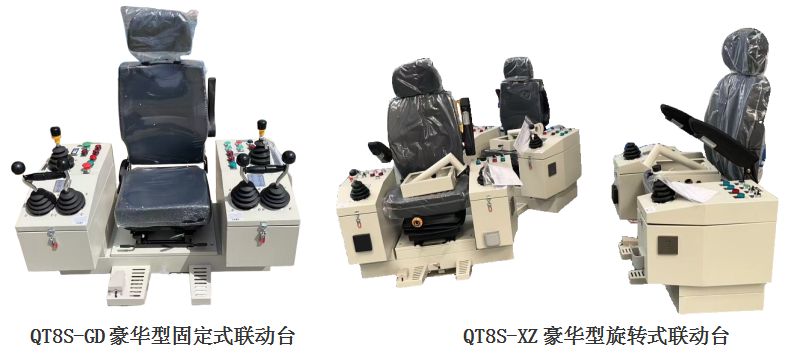 QT8S豪華型港機(jī)聯(lián)動臺,是為大型港口高價值大中噸位門座起重機(jī)和岸橋起重機(jī)以及架橋機(jī)、門式起重機(jī)等研發(fā)的機(jī)型。本機(jī)型也可用于高價值重要場合的冶金起重機(jī)。其機(jī)型有固定式和旋轉(zhuǎn)式兩種類型。機(jī)箱內(nèi)均配置<SJ>P-VNSO經(jīng)典操縱桿。其配置的座椅為豪華座椅。