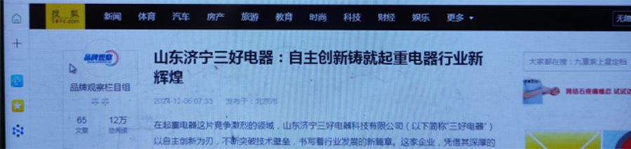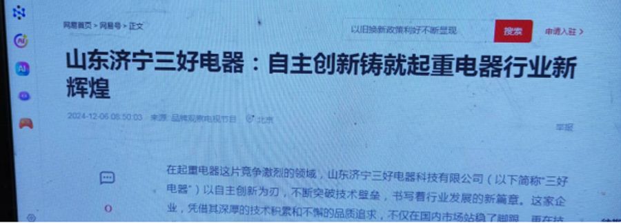 濟(jì)寧三好電器堅(jiān)持自主創(chuàng)新和產(chǎn)品戰(zhàn)略,得到國家官媒新華社及國內(nèi)各大媒體的關(guān)注。于2024年11月4號和2024年11月5日,新華社及各大媒體連續(xù)發(fā)2次新聞稿,對濟(jì)寧三好電器進(jìn)行了專題新聞報(bào)道。