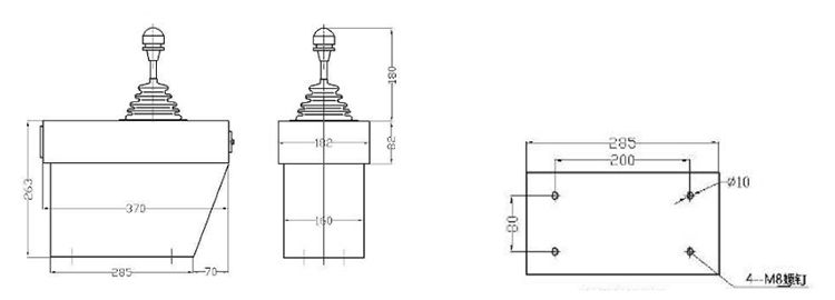 3.1、QT3S輕型聯(lián)動(dòng)臺(tái)是我公司專(zhuān)為中大型高價(jià)值的塔式起重機(jī)自行開(kāi)發(fā)的一種高端塔機(jī)備件,機(jī)箱由全金屬板材制成。每套聯(lián)動(dòng)臺(tái)由左、右箱構(gòu)成。其機(jī)箱內(nèi)裝備<SJ>P-XKDF全金屬高端主令控制器。該輕型聯(lián)動(dòng)臺(tái)應(yīng)安裝在塔機(jī)司機(jī)室內(nèi)選配底座上使用。具體安裝尺寸可選用本圖安裝尺寸,也可定制。